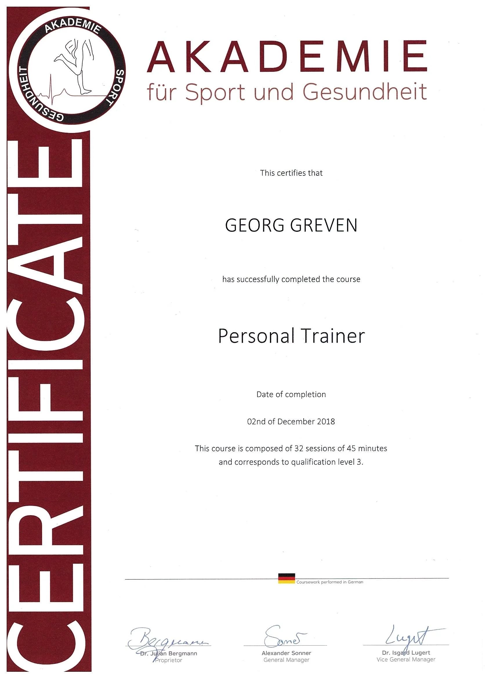 My name is Georg Greven. I am a CrossFit Level 1 Trainer, certified Personal Trainer, Medical Fitness Trainer and a Nutrition Consultant.